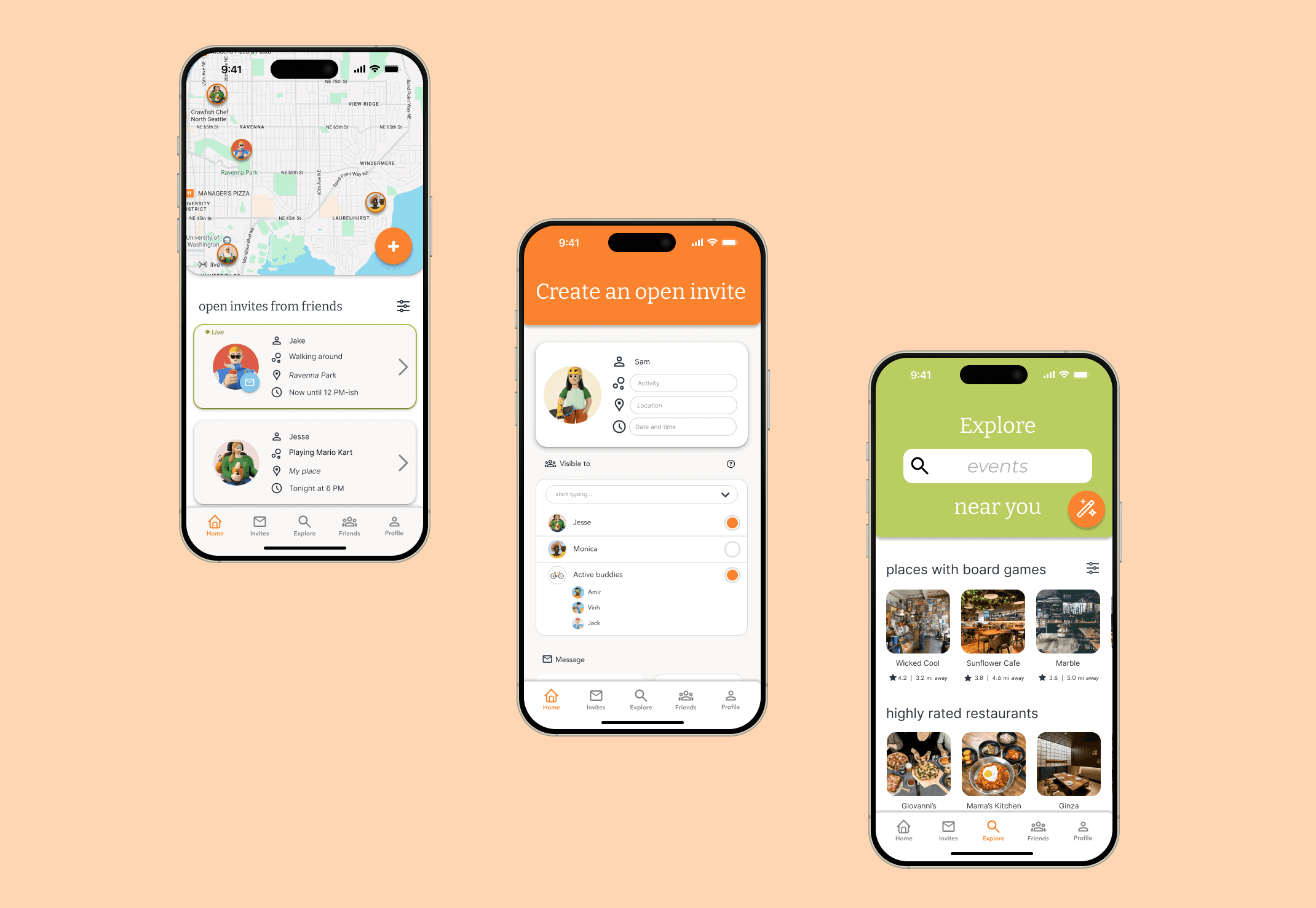 A real-time availability map that lets users see which friends are open to hanging out nearby.